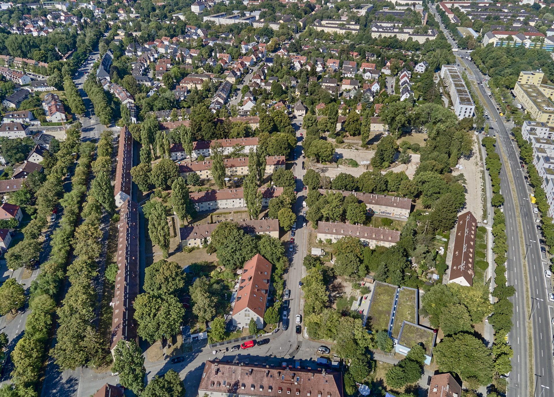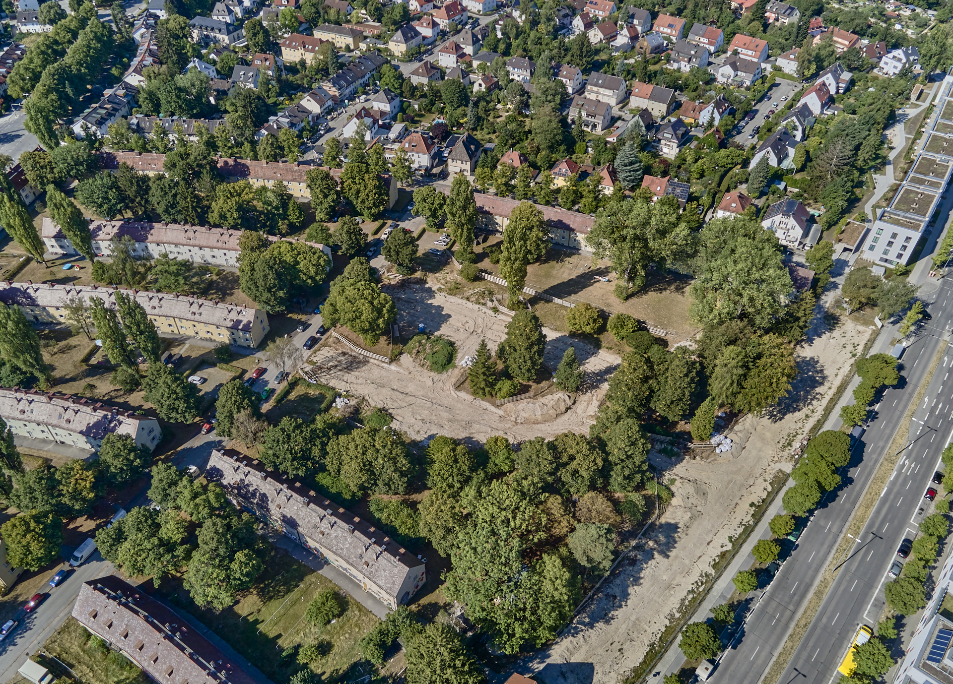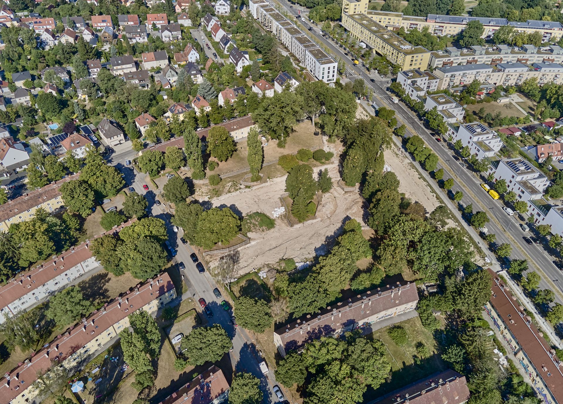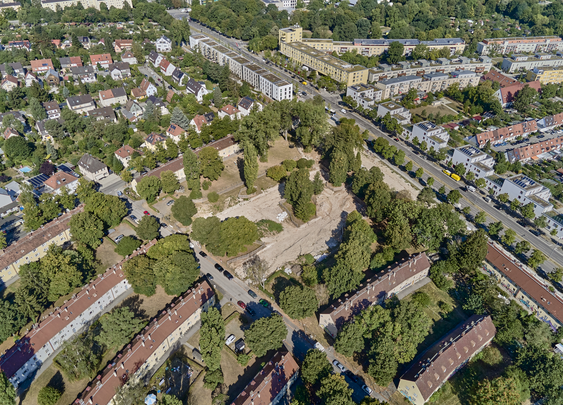17.08.2022 - Luftbilder von der Baustelle Maikäfersiedlung in Berg am Laim
