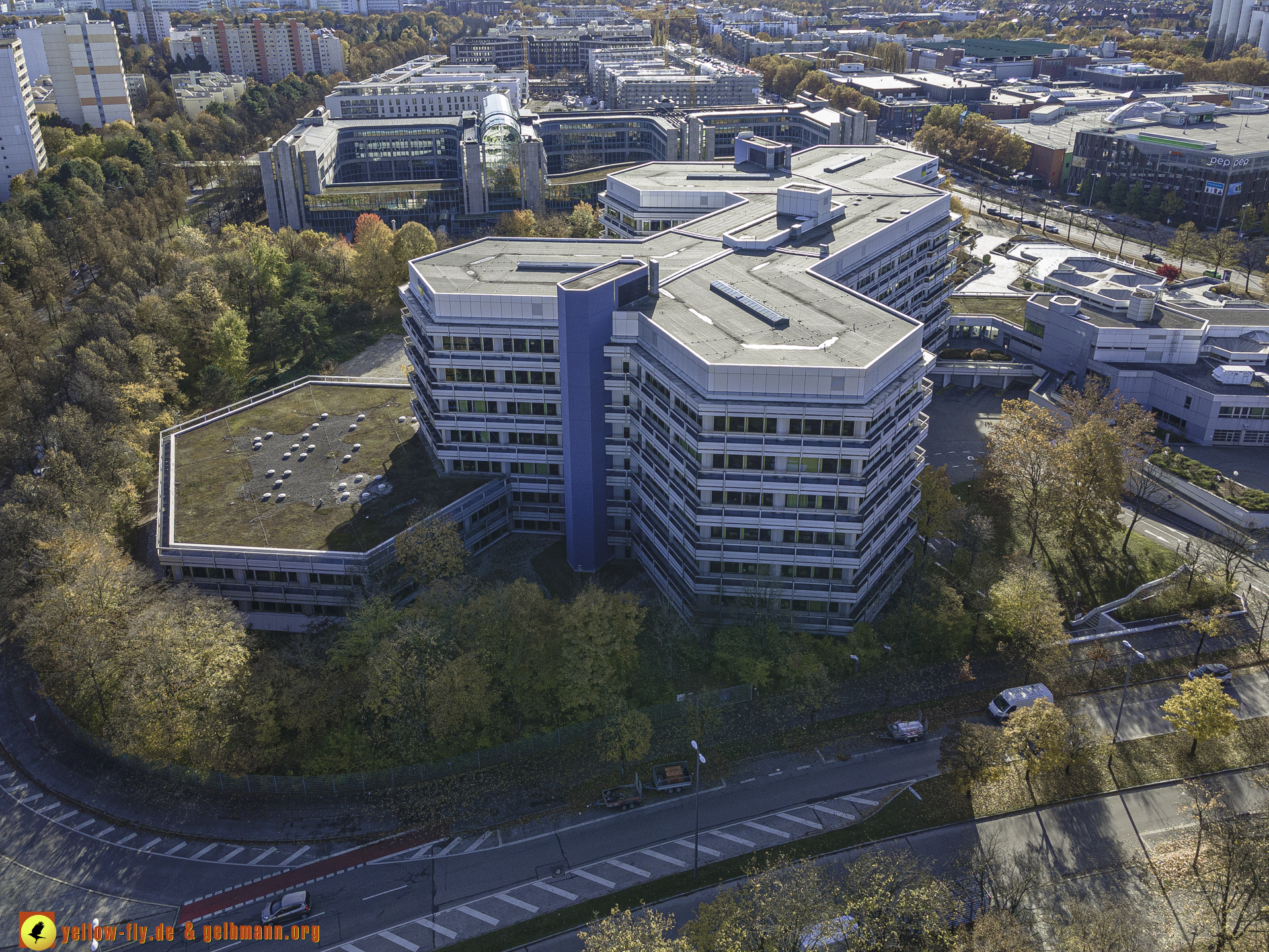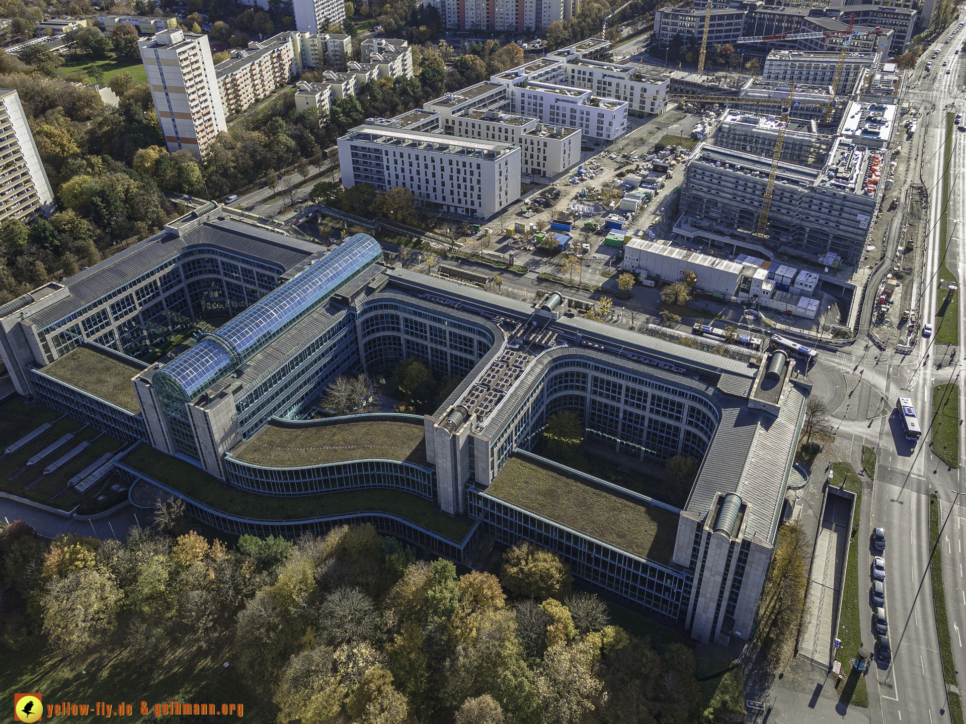 "Blick auf die "Deutsche Rentenversicherung Bayern-Süd" und WACKER-Chemie in Neuperlach